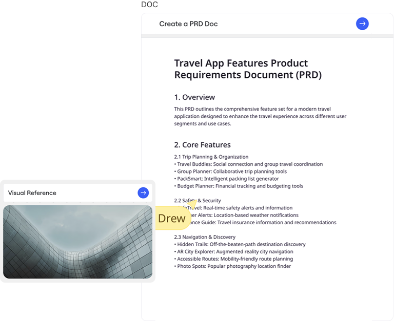 아이디어에서 구조화된 계획으로 빠르게 전환하세요. 문서, 테이블, 슬라이드, 다이어그램 등 다양한 포맷을 사용할 수 있습니다.